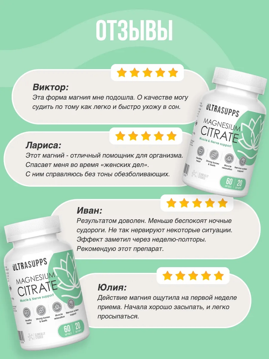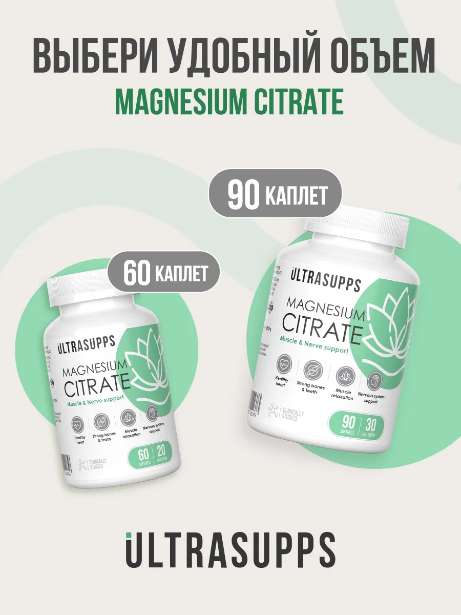 Ultrasupps Magnesium Citrate 60 софтгель