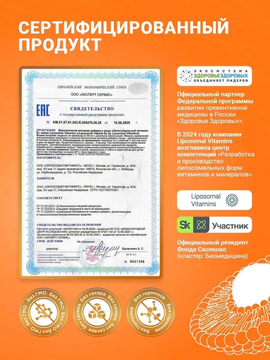 Liposomal Vitamin E, флакон 50 мл