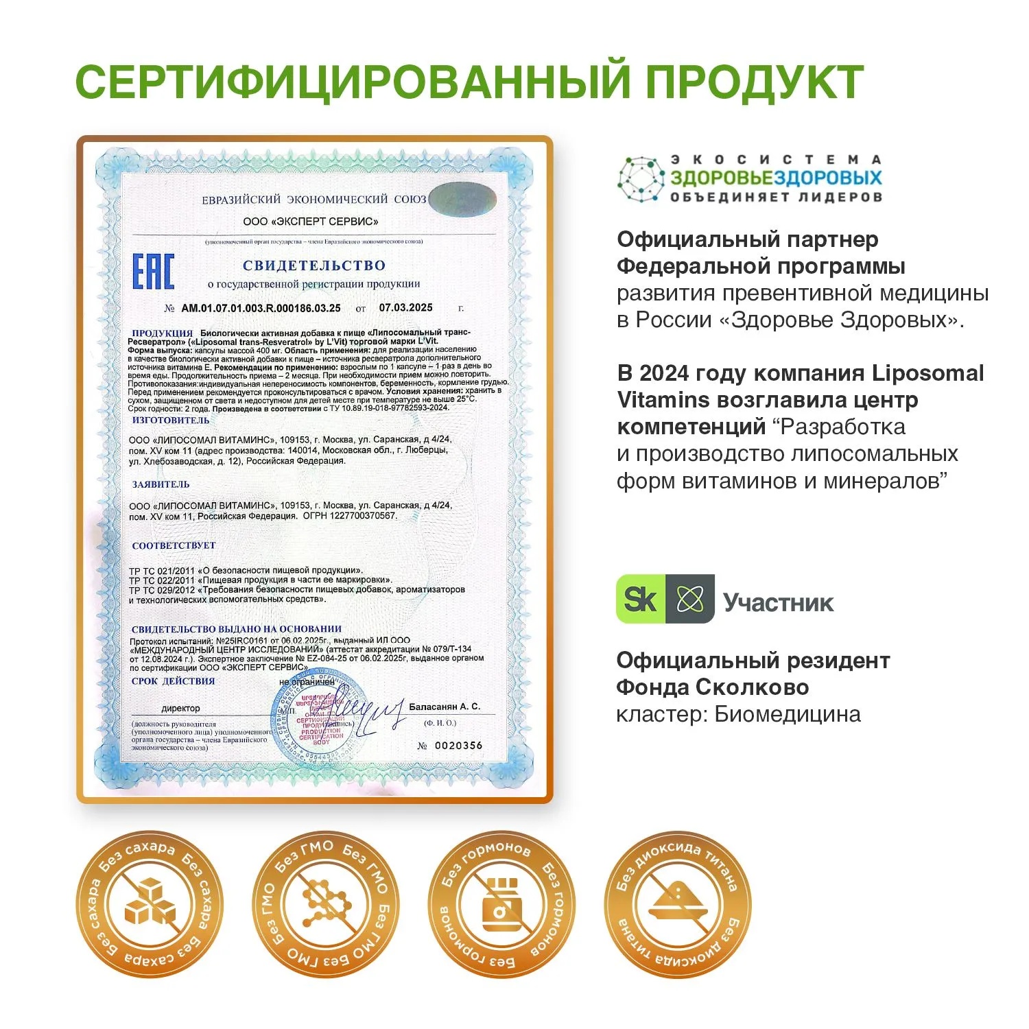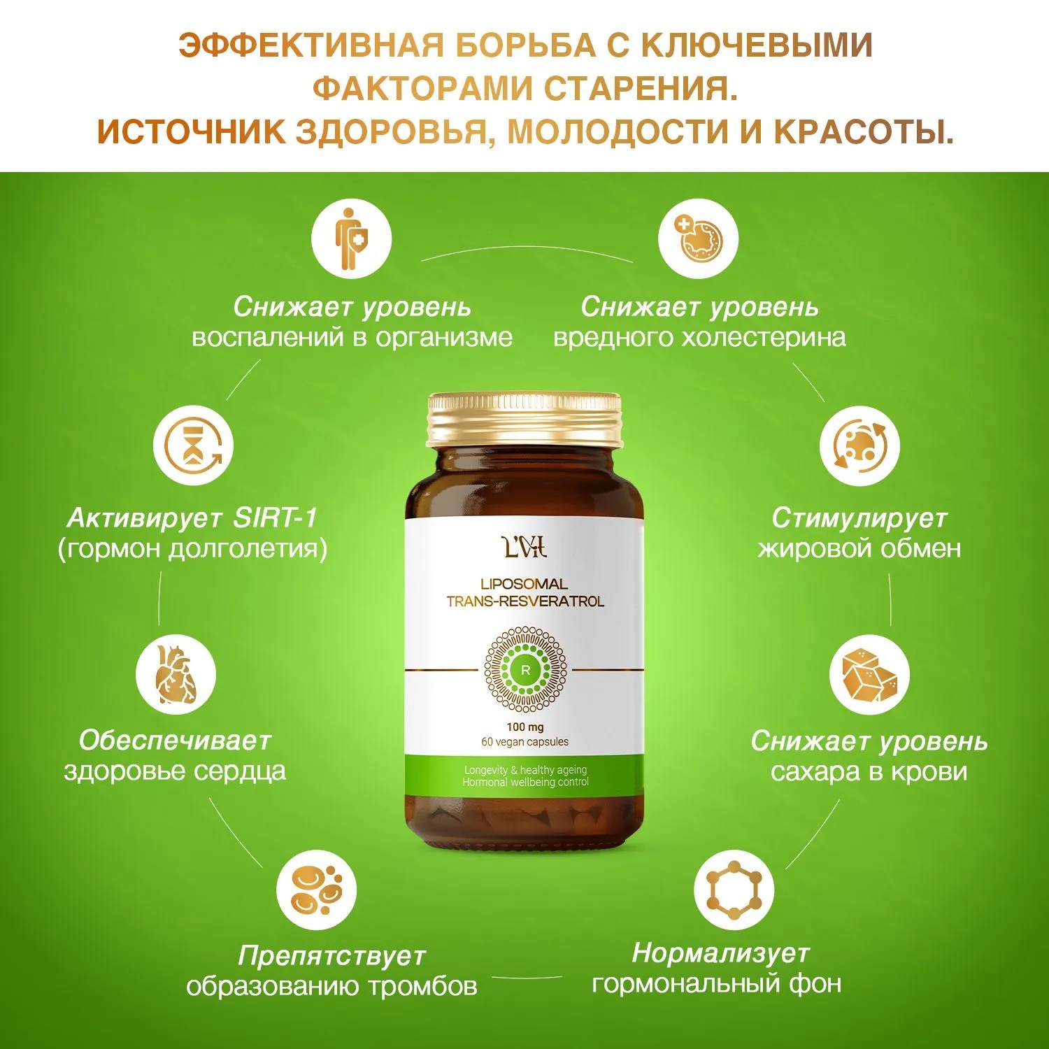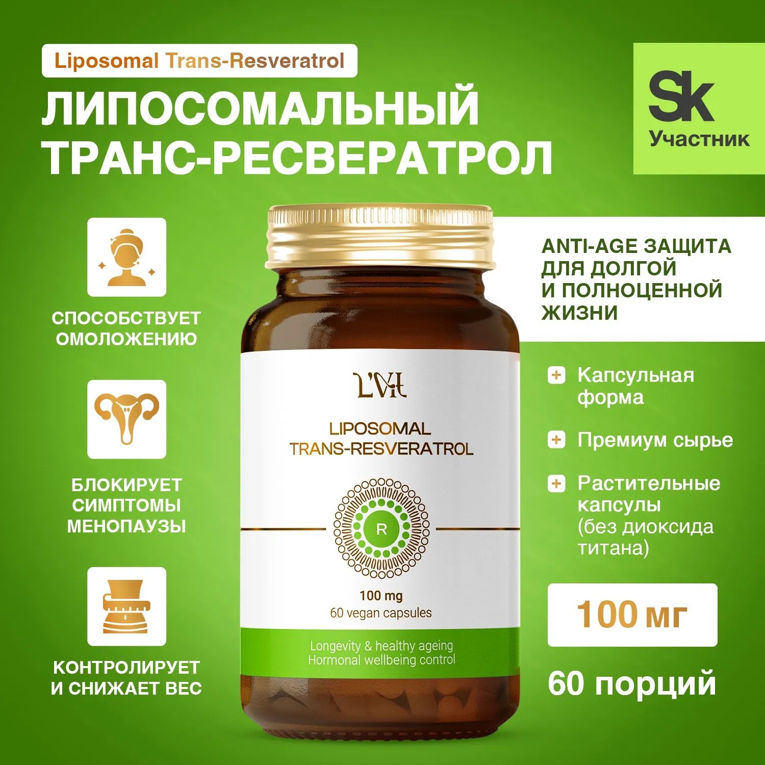 L'Vit Liposomal trans-Resveratrol, 60 капсул