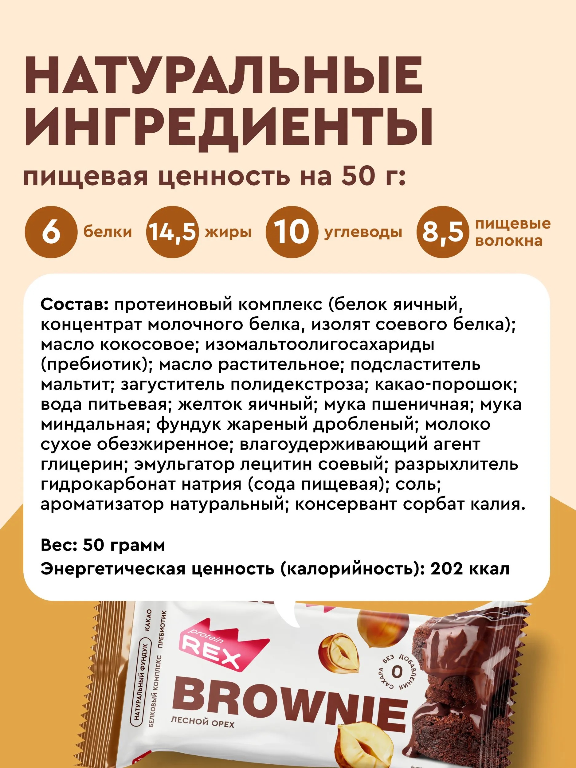 Protein Rex Пироженое протеиновое "Брауни" 50 г - лесной орех