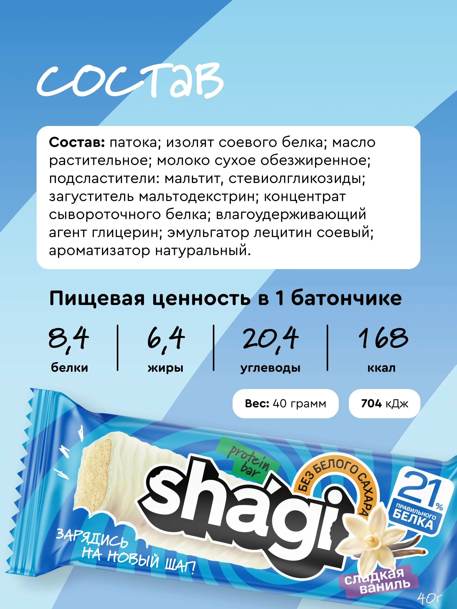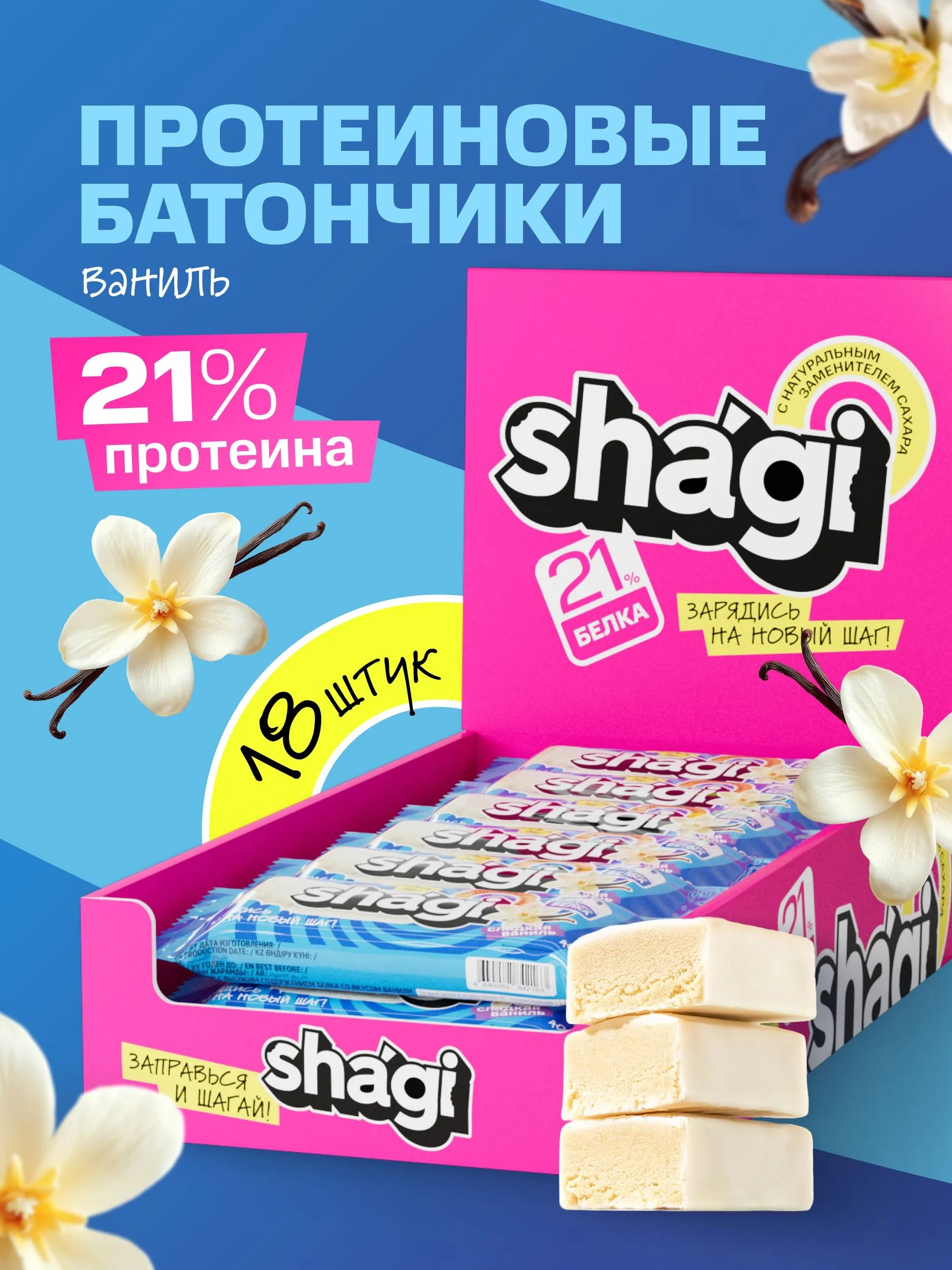 Protein Rex Shagi Батончик с высоким содержанием белка 40 г - ваниль